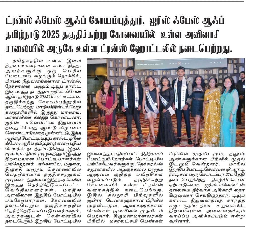 Tubelight Production proudly partners with Iris Events for Face of Tamil Nadu – College Edition, bringing talent, creativity, and opportunities together on one stage.
