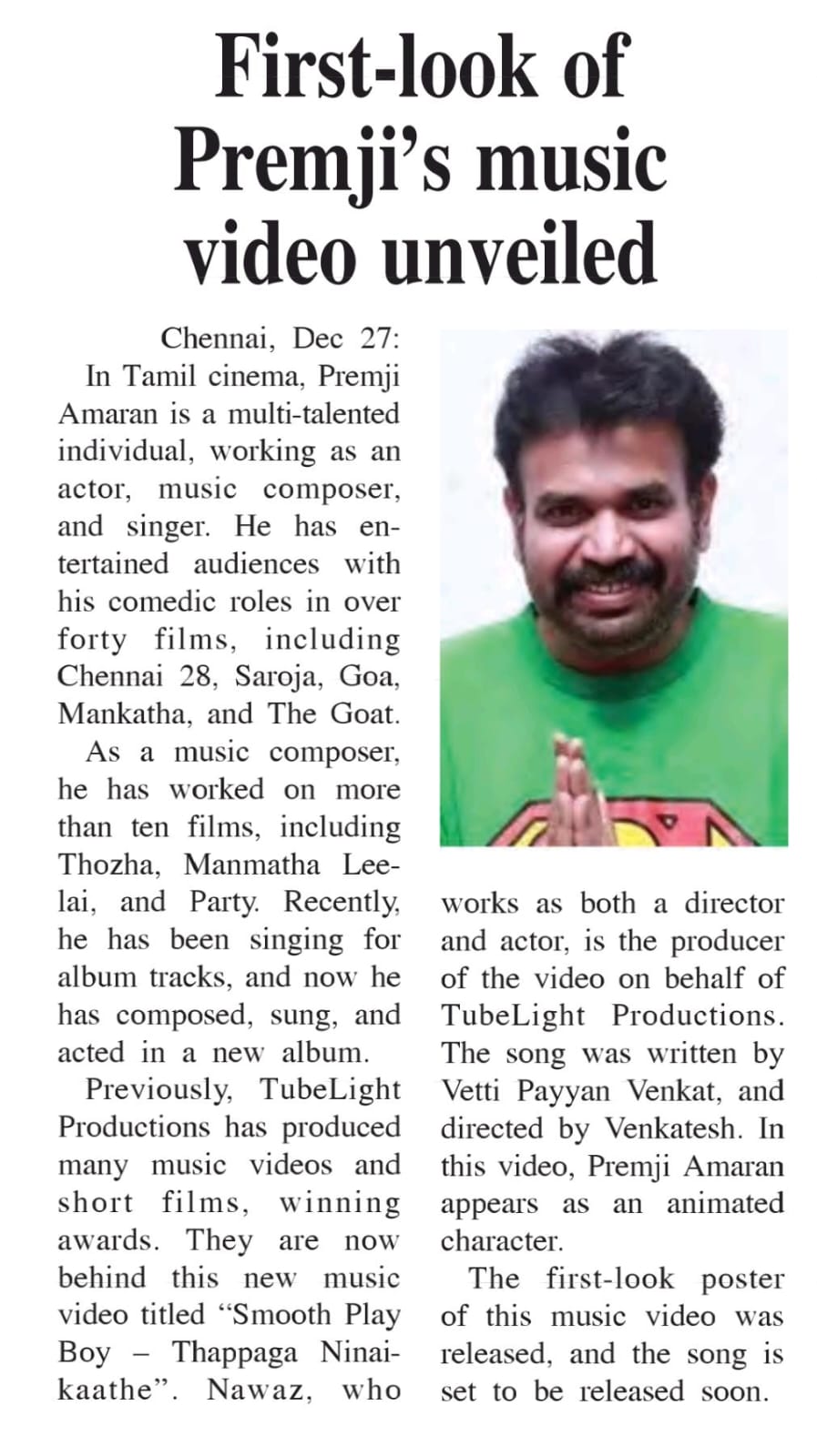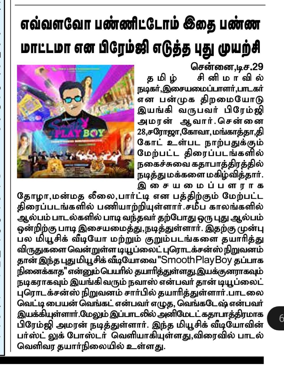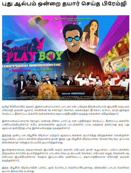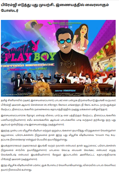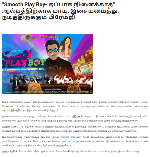 Tube Light Productions proudly presents its first-ever animated music album — Smooth Playboy: Thappaga Ninaikadhe